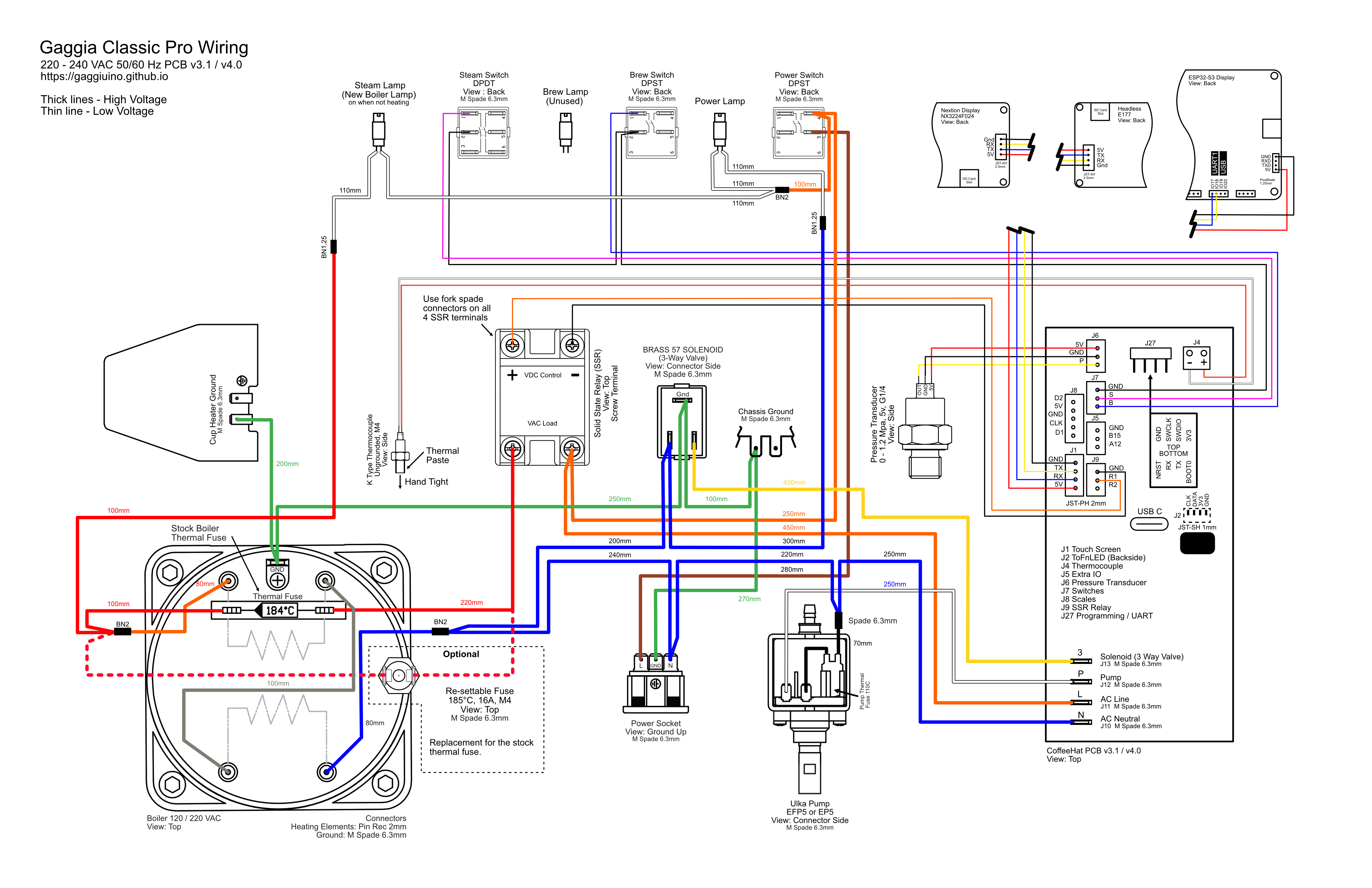 Secondly, you need to choose how to integrate the board with the components of the machine. You need to alter the internal wiring. You have two choices again: Either you keep the existing wiring and modify it where necessary (stock wiring integration). Or, you remove all wires and make your own (custom wiring integration). My machine is a european one, so it has a “ECO-PCB”, which is a functionality that turns the machine off after 20 minutes of inactivity. Custom wiring is recommended to circumvent that so I opt for this route.